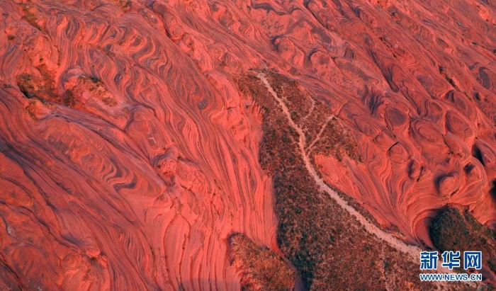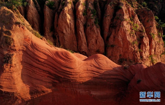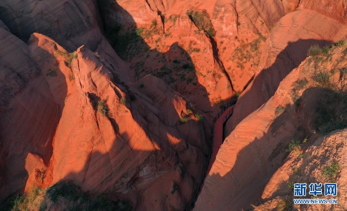 陜西省靖邊縣龍洲鎮(zhèn)波浪谷丹霞景區(qū)地處陜北黃土高原,峽谷四面環(huán)山,線谷、巷谷、絕壁等構(gòu)成了特有的波浪形砂巖地貌,景觀獨特。