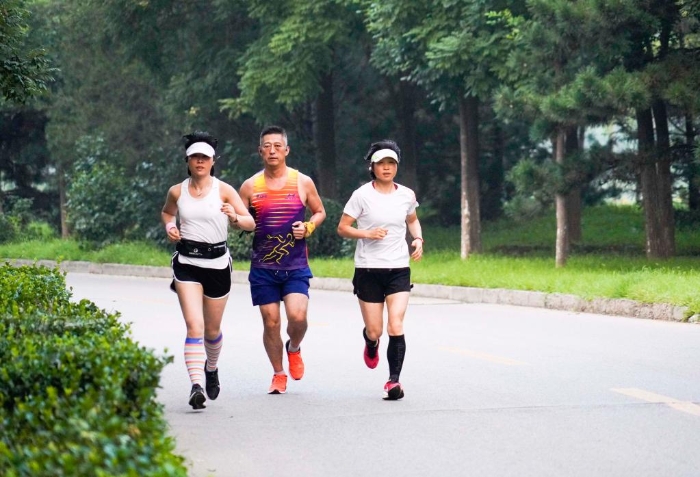 河北省遵化市的長跑愛好者在公園晨練。新華社發(fā) 劉滿倉 攝