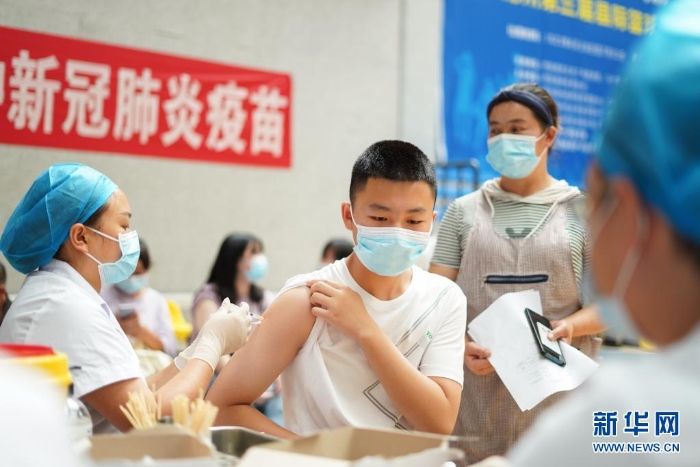 8月12日,一名未成年人在浙江省麗水市景寧畬族自治縣新冠疫苗接種點(diǎn)接種疫苗。