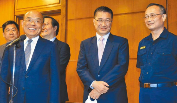 臺行政機(jī)構(gòu)負(fù)責(zé)人蘇貞昌(左前)今天分批接見8名新任警察局長,內(nèi)政部門主管徐國勇(中)也會列席參加。(臺灣《中國時報》資料照片)