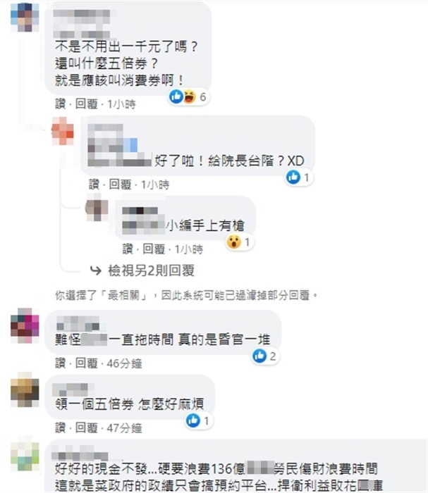 消息一出,迅速引發(fā)網(wǎng)絡(luò)熱議。大批網(wǎng)友認(rèn)為五倍券規(guī)劃有欠周延;尤其領(lǐng)券必須先預(yù)約,更引發(fā)許多網(wǎng)友不滿,涌入社交平臺相關(guān)新聞連結(jié)下方留言:“還要預(yù)約?有夠麻煩!”“領(lǐng)一個五倍券,怎么好麻煩”、“就不能馬上臨柜馬上領(lǐng)嗎?”“這次不用掏錢買,手續(xù)怎沒更簡便?”“繁瑣程序背后成本多少?我的納稅錢啊!”“搞一堆券有夠不實際”、“麻煩的手續(xù)會排擠很多人”、“擾民,煩耶”。