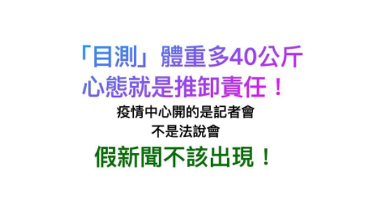 他表示,正常的80至90公斤的成年人體重被增加到120-130公斤,其背后心態(tài)是想推卸責(zé)任?誘導(dǎo)是其身體狀況不佳?無(wú)論何種原因,記者會(huì)是正式官方說(shuō)法,假新聞不該從官員口中出現(xiàn),別把正式記者會(huì)搞得像是公司法說(shuō)會(huì),別踐踏民眾對(duì)于疫情中心的信賴。