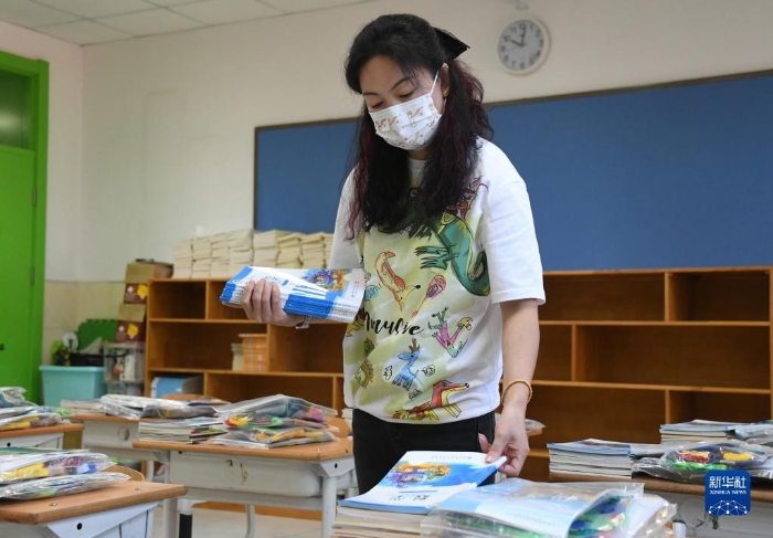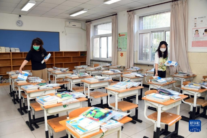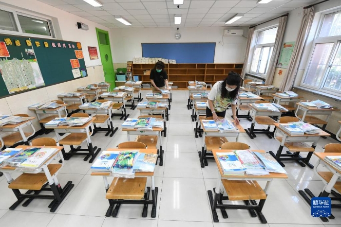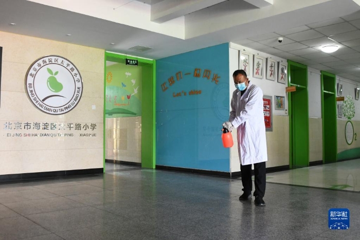 新學(xué)期臨近,北京市海淀區(qū)太平路小學(xué)做好學(xué)生教材分發(fā)、教室布置等開學(xué)準備。與此同時,學(xué)校對教學(xué)樓樓道、教室以及食堂廚房等重點區(qū)域定期消毒,保障環(huán)境衛(wèi)生。