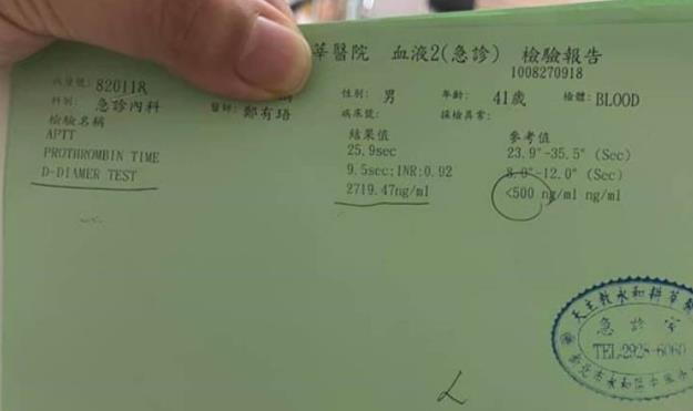 男子接種臺產(chǎn)疫苗后出現(xiàn)血栓反應(yīng)(臺媒報道截圖)