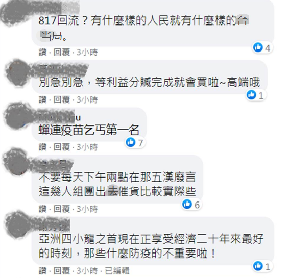臺灣網(wǎng)友在羅友志文章下方留言。(圖/摘自羅友志臉書)
