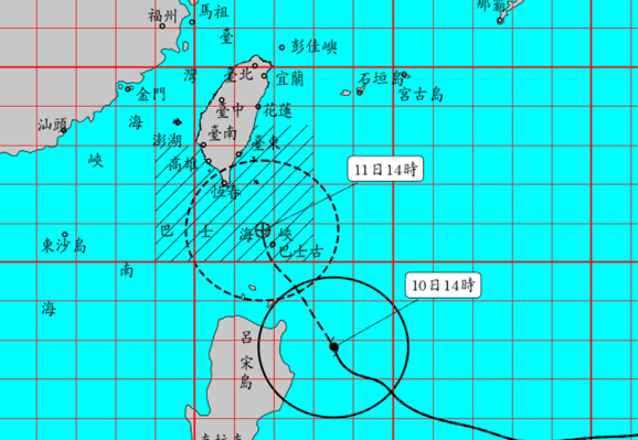 氣象部門預(yù)報(bào)員徐仲毅表示,影響的時(shí)程從今天晚間至明天下半天起影響逐漸變大,對天氣最大的范圍會(huì)在東半部、基隆北海岸、恒春半島,其他地區(qū)以中午過后明顯,越晚越明顯,12日的降雨熱區(qū)會(huì)在中部以北、宜蘭花蓮可能會(huì)有局部性大雨或豪雨,甚至?xí)芯植亢烙暌陨系燃壗涤?,海面上的風(fēng)浪要至13日后才會(huì)遠(yuǎn)離后才會(huì)趨緩。