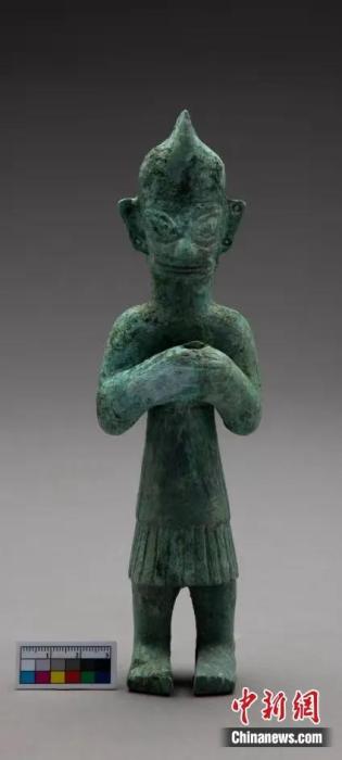 三星堆出土青銅扭頭跪坐人像 展現(xiàn)三千多年前古蜀寫實雕塑藝術(shù)