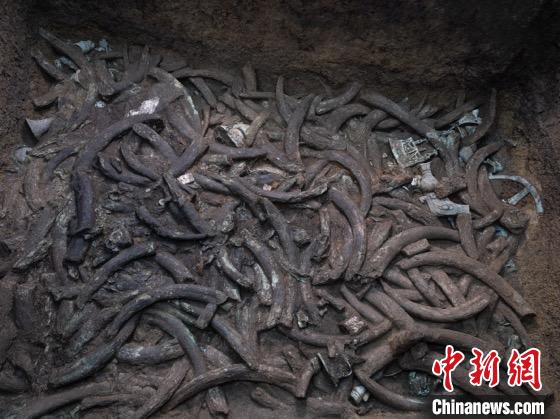 祭祀坑內(nèi)大量象牙層層疊疊。四川省文物考古研究院供圖(來源:中新網(wǎng))