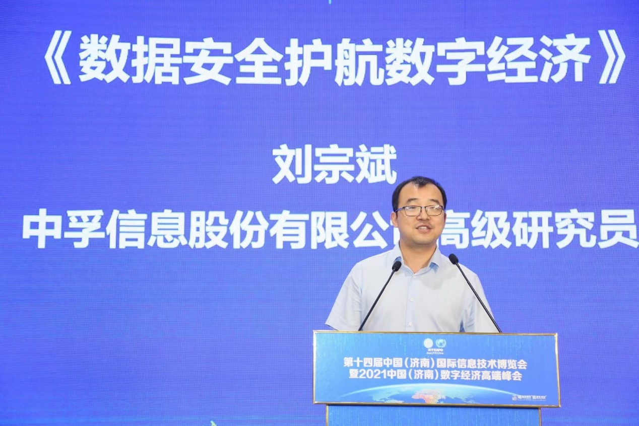 在博覽會(huì)同期舉辦的“2021中國(guó)(濟(jì)南)數(shù)字經(jīng)濟(jì)高端峰會(huì)”上,中孚信息研究院高級(jí)研究員劉宗斌與來(lái)自行業(yè)內(nèi)的20多名專(zhuān)家學(xué)者和企業(yè)代表現(xiàn)場(chǎng)圍繞數(shù)字經(jīng)濟(jì)發(fā)展總趨勢(shì)、“雙碳”背景下的數(shù)字化轉(zhuǎn)型、數(shù)據(jù)安全護(hù)航數(shù)字經(jīng)濟(jì)、新基建引領(lǐng)智慧城市高質(zhì)量發(fā)展等內(nèi)容展開(kāi)交流和探討。