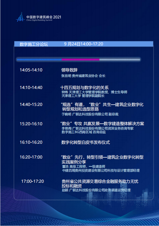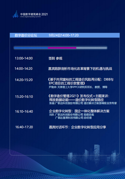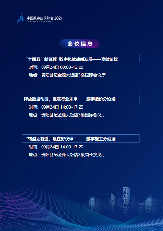 本次大會主題為數(shù)字化轉(zhuǎn)型發(fā)展,結合新時代社會發(fā)展的潮流、行業(yè)需求,推動:“十四五”新征程 數(shù)字化賦能新發(fā)展――高峰論壇、“釋放數(shù)據(jù)動能,重筑行業(yè)未來”數(shù)字造價分論壇、“轉(zhuǎn)型須有道,贏在好伙伴”數(shù)字施工分論壇三大主題性論壇,以主題演講+專家解說+現(xiàn)場交流的全方面互動形式,加強行業(yè)的交流互動,展現(xiàn)建筑行業(yè)數(shù)字化創(chuàng)新發(fā)展理論成果,以新發(fā)展理念推動高質(zhì)量發(fā)展。