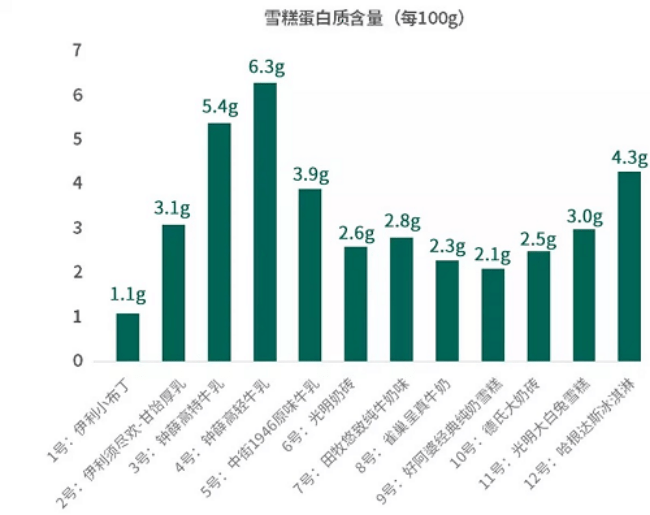 北京營(yíng)養(yǎng)師協(xié)會(huì)理事、清華大學(xué)醫(yī)學(xué)院碩士顧中一認(rèn)為,一般100g牛奶里含蛋白質(zhì)大約3.2g,所以如果一款雪糕/冰淇淋蛋白質(zhì)含量能達(dá)到這個(gè)水平,就已經(jīng)是很不錯(cuò)的了。