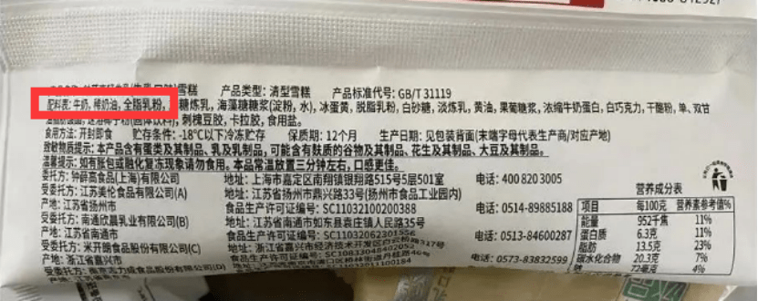 從配料表上看,雪糕、冰淇淋兩者所用的配料,按成分來說,占比較大的一塊脂肪和蛋白質(zhì),這是帶來細(xì)膩滑潤(rùn)口感所必不可少的成分。