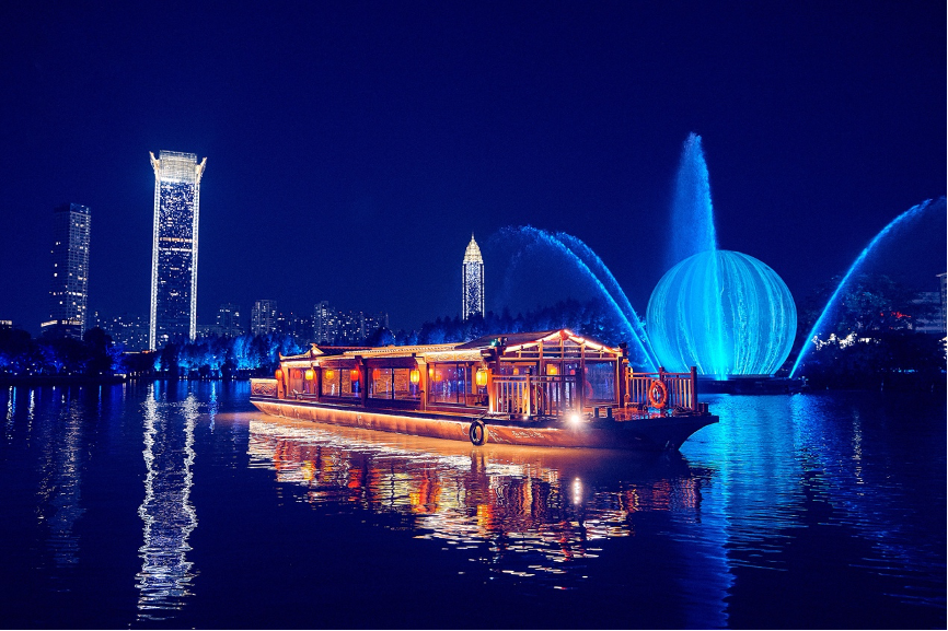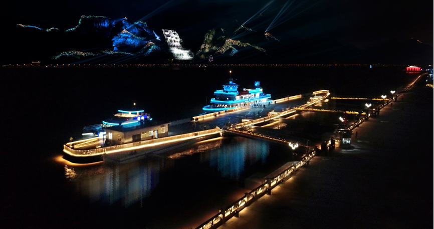 甌江夜游共獲得三項(xiàng)吉尼斯世界紀(jì)錄――“世界最大山體燈光秀”、“世界最大光瀑布”、 “世界最大的永久性水幕投影”,是視覺(jué)、聽(tīng)覺(jué)的全方位震撼體驗(yàn)?!碧梁右巩嫛笔侵袊?guó)首部城市記憶主題行進(jìn)式夜游演出,登上畫舫,船身動(dòng),緩緩穿越千年,成為溫州新一代網(wǎng)紅打卡的地標(biāo)。