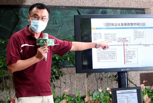臺當局“農(nóng)委會主委”陳吉仲針對“大陸暫停臺灣釋迦及蓮霧輸入之因應(yīng)措施”記者會。圖片來源:臺灣《中國時報》