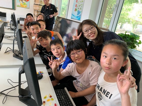 德科斯米爾志愿者在喀左縣的德科斯米爾電腦教室教授孩子們電腦技能