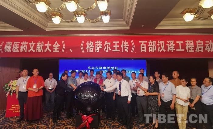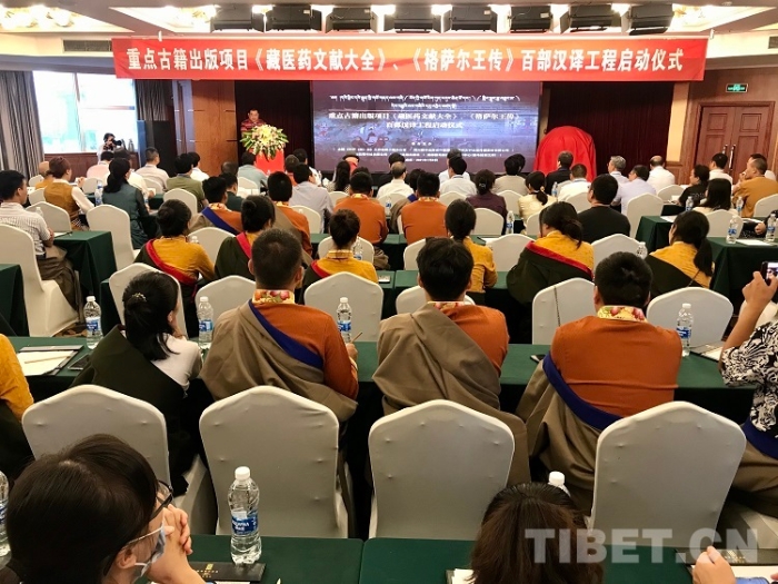 中國(guó)西藏網(wǎng)訊 7月8日,由全國(guó)《格薩(斯)爾》工作領(lǐng)導(dǎo)小組辦公室、四川新華出版發(fā)行集團(tuán)、新華文軒出版?zhèn)髅焦煞萦邢薰尽⑺拇ò褪駮?shū)社有限公司、四川民族出版社、喜馬拉雅文庫(kù)聯(lián)合主辦的“重點(diǎn)古籍出版項(xiàng)目《藏醫(yī)藥文獻(xiàn)大全》《格薩爾王傳》百部漢譯工程啟動(dòng)儀式”在成都舉行。