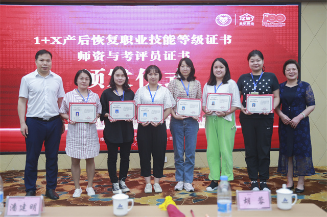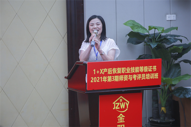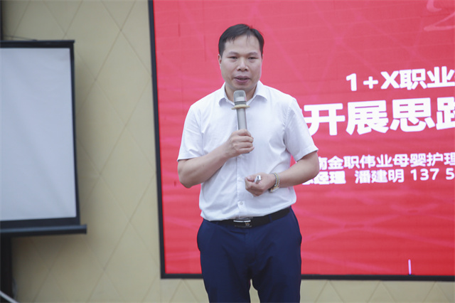 比賽結(jié)束后,1+X產(chǎn)后恢復(fù)職業(yè)技能等級(jí)證書第三期師資及考評(píng)員培訓(xùn)結(jié)業(yè)典禮正式拉開序幕。金職偉業(yè)董事長彭英、總經(jīng)理潘建明出席并發(fā)言。彭英董事長首先對(duì)此次競賽中各位老師展現(xiàn)出的教學(xué)能力及精神表示贊賞,并強(qiáng)調(diào)經(jīng)過此次培訓(xùn),各位老師獲得了兩張證書,這不僅賦予了新的責(zé)任,也擔(dān)負(fù)了新的使命?!按舜闻嘤?xùn)到今天就正式結(jié)束了,今后,金職偉業(yè)將會(huì)吸取經(jīng)驗(yàn),將1+X證書師資培訓(xùn)做得更加專業(yè),也希望各位老師在回校后,將學(xué)到的產(chǎn)后恢復(fù)知識(shí)靈活運(yùn)用至校內(nèi),共同推動(dòng)1+X產(chǎn)后恢復(fù)證書試點(diǎn)工作的落地?!苯鹇殏I(yè)總經(jīng)理潘建明分享道。