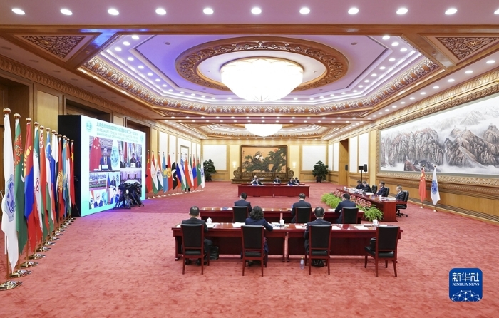 9月17日,國家主席習(xí)近平在北京以視頻方式出席上海合作組織成員國元首理事會第二十一次會議并發(fā)表重要講話。新華社記者 劉彬 攝
