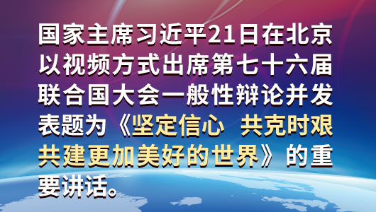 9月21日,國家主席習近平在北京以視頻方式出席第七十六屆聯(lián)合國大會一般性辯論并發(fā)表題為《堅定信心 共克時艱 共建更加美好的世界》的重要講話。新華社記者 黃敬文 攝