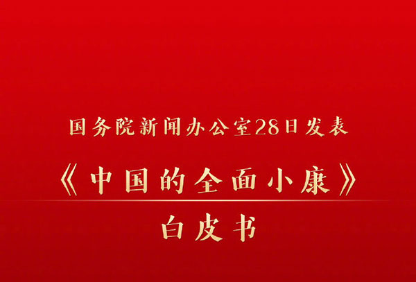 國(guó)務(wù)院新聞辦公室9月28日發(fā)布《中國(guó)的全面小康》白皮書(shū)。