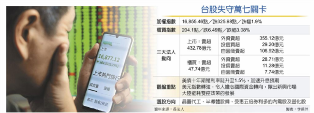 臺股失守萬七關(guān)卡 圖片來源:臺灣《工商時報》