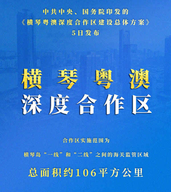 中共中央、國務(wù)院印發(fā)的《橫琴粵澳深度合作區(qū)建設(shè)總體方案》5日發(fā)布。建設(shè)橫琴新區(qū)的初心就是為澳門產(chǎn)業(yè)多元發(fā)展創(chuàng)造條件。新形勢下做好橫琴粵澳深度合作區(qū)開發(fā)開放,是深入實(shí)施《粵港澳大灣區(qū)發(fā)展規(guī)劃綱要》的重點(diǎn)舉措,這是豐富“一國兩制”實(shí)踐的重大部署,是為澳門長遠(yuǎn)發(fā)展注入的重要?jiǎng)恿?,有利于推?dòng)澳門長期繁榮穩(wěn)定和融入國家發(fā)展大局。