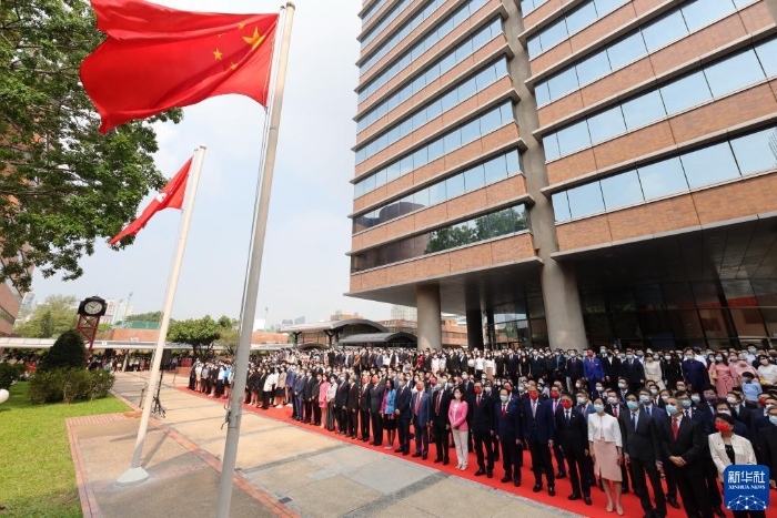 10月1日,香港理工大學(xué)舉行升旗儀式。