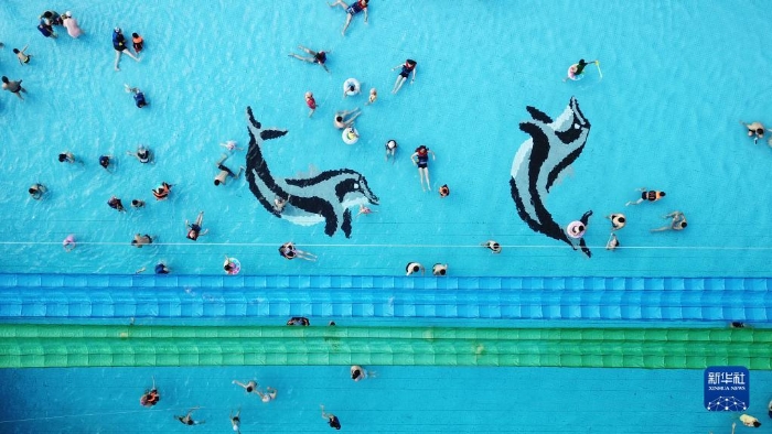 10月2日,游客在湖南長沙世界之窗水上樂園游玩(無人機照片)。