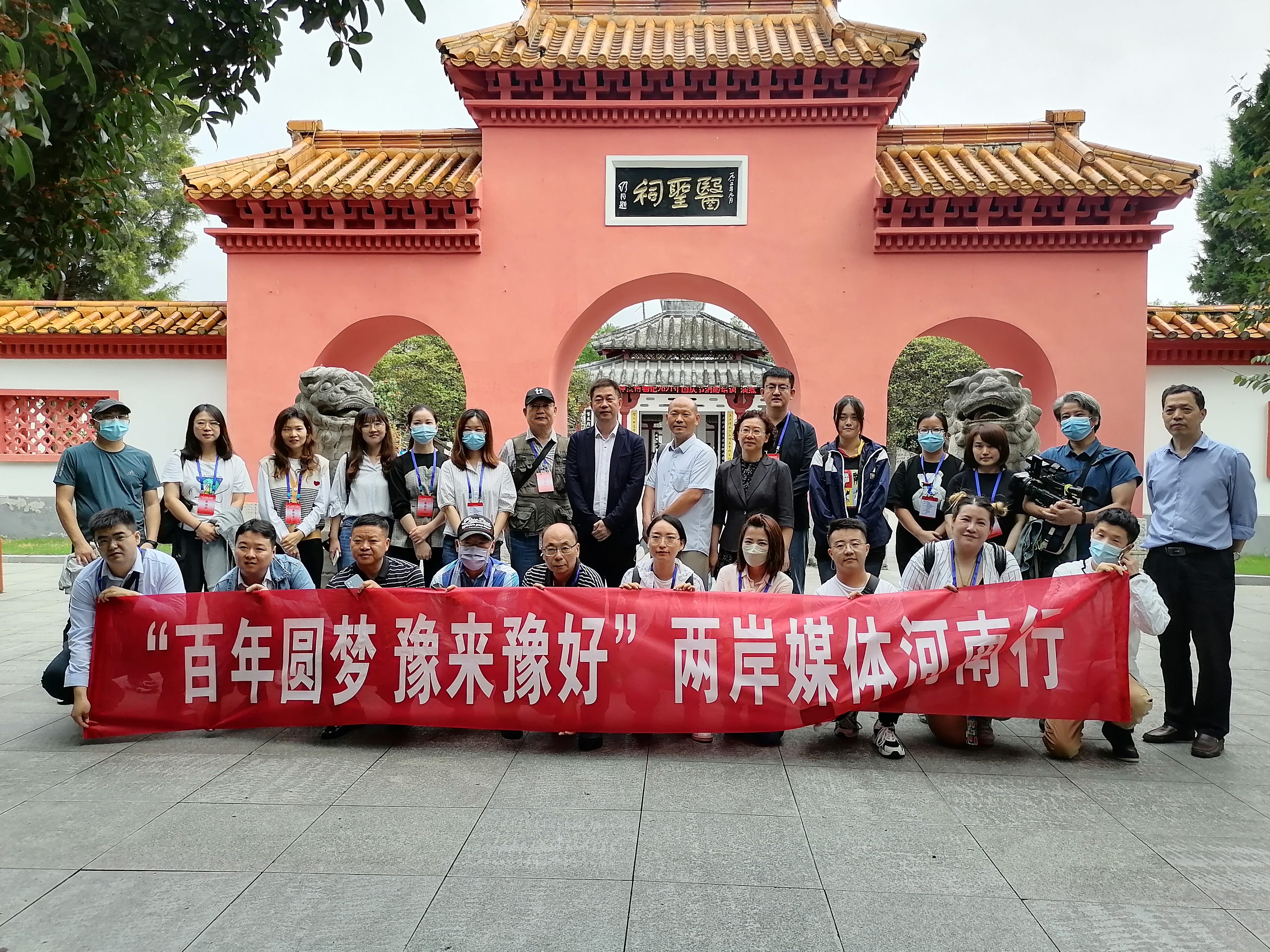 兩岸記者在醫(yī)圣祠大門外合影留念