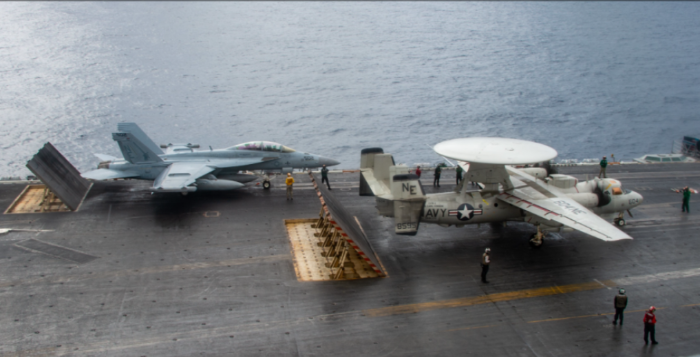 10月6日,美國“卡爾·文森”號(hào)航母在南海進(jìn)行艦載機(jī)起降訓(xùn)練(新華網(wǎng))