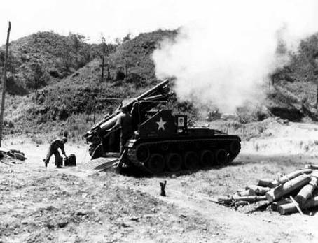 △美軍戰(zhàn)地裝甲炮兵營(yíng)配備的155毫米榴彈炮正在發(fā)射。