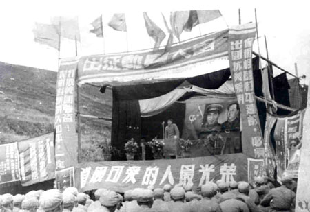 △志愿軍某部召開出征動(dòng)員大會(huì)。圖源:中國軍網(wǎng)
