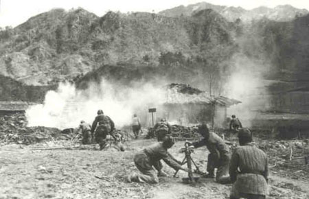 臨津江位于漢城以北75公里處,中游一段橫瀉在“三八線”上,時值寒冬,冰雪堆積深厚,南岸均為天然峭壁不便攀登,韓國第1步兵師憑借臨津江天險,構(gòu)成了縱深約9公里的3道防御陣地,號稱"銅墻鐵壁、不可逾越"。突破臨津江,既是重中之重,又是難上之難,作為第三次戰(zhàn)役的關(guān)鍵一環(huán),這項艱巨任務(wù)被交由志愿軍39軍116師完成。在兵力兵器總體優(yōu)勢不大的情況下,臨津江畔較量的關(guān)鍵,首先落在了進攻的突然性和戰(zhàn)前準(zhǔn)備的充分程度上。經(jīng)過精確計算和萬全準(zhǔn)備,12月31日,第39軍116師僅用11分鐘即突破敵軍的江岸防線,勝利完成了突破任務(wù)。