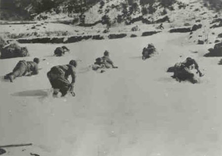 敵進攻開始后,我西線第38軍和第50軍負責在漢江南岸一線阻擊向漢城進攻的美第1軍。在天寒地凍、糧彈供應困難、工程器材異常缺乏的條件下,我志愿軍依托一般野戰(zhàn)工事,頑強堅守陣地,每一要點都要和敵人反復爭奪,使敵付出重大代價。漢江南岸阻擊戰(zhàn)進行了20余天,是志愿軍戰(zhàn)史上最艱苦的防御戰(zhàn)之一。我志愿軍也從防御作戰(zhàn)中吸取教訓,在前沿對部隊實行疏散配置,火炮也進行分散隱蔽,并總結了“兵力配置前輕后重,火力配置前重后輕”的原則,同時對白天失去的陣地,夜間再以反擊奪回。