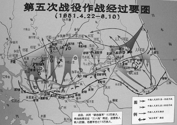 △第五次戰(zhàn)役作戰(zhàn)經(jīng)過(guò)要圖 1951.4.22-6.10 圖源:中國(guó)共產(chǎn)黨新聞網(wǎng)