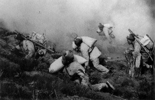 后勤部隊(duì)突破封鎖線往陣地前沿送飯