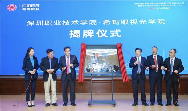 同時,在市政府產(chǎn)耀東副秘書長、深職院楊欣斌書記、許建領(lǐng)校長、?,斞劭屏猪槼苯淌?、李肖婷總裁、中山大學中山眼科中心屈光與低視力專科曾駿文主任的共同見證下,“深圳職業(yè)技術(shù)學院·?,斞垡暪鈱W院”正式揭牌成立。