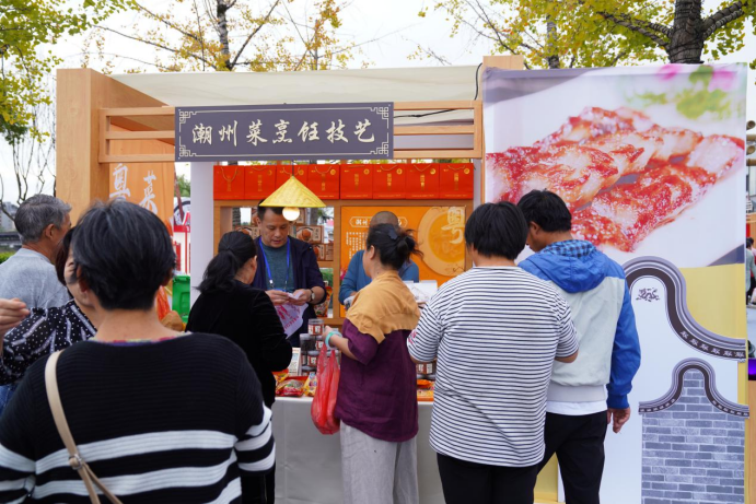 “增味增彩 美食飄香”中國(guó)八大菜系展,整個(gè)黎陽(yáng)in巷充滿(mǎn)濃郁的古典江南韻味,市民和游客朋友們?cè)诖?,品嘗徽州毛豆腐、徽州臭鱖魚(yú)、績(jī)溪撻粿等徽州傳統(tǒng)美食,聽(tīng)三大炮制作時(shí)的“當(dāng)、當(dāng)、當(dāng)”聲,還可以隨心品嘗八大菜系代表性臻味,近距離接觸山東蒙陰煎餅、四川樂(lè)山缽缽雞、四川楊記鹵鵝等制作技藝,以“視、聽(tīng)、嗅、觸”等多重體驗(yàn),感受非遺美食之魅力。