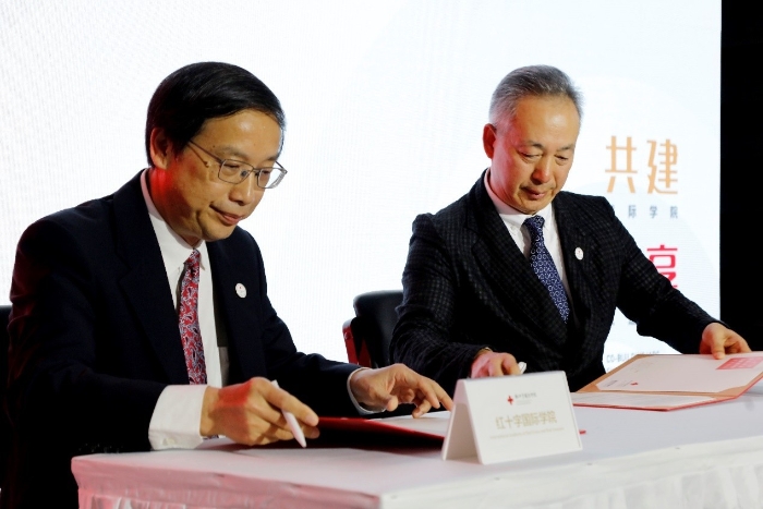 開班儀式上,紅十字國際學院院長王汝鵬與偉東云教育集團董事長王端瑞簽署合作協(xié)議,偉東云教育集團將出資500萬元,開發(fā)建設(shè)面向全球的紅十字國際學院云教育平臺,為國內(nèi)外紅十字組織、會員、志愿者以及其他有志于人道慈善事業(yè)的用戶提供網(wǎng)絡(luò)教學、培訓、交流的平臺。