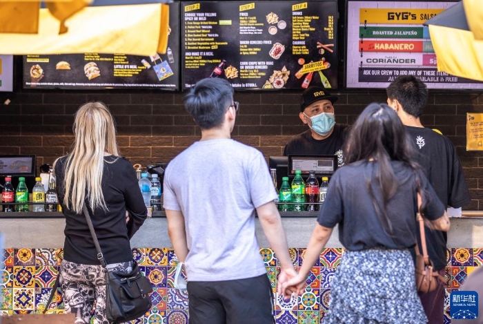 10月18日,人們在澳大利亞悉尼一家恢復營業(yè)的快餐店點餐。