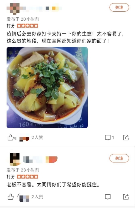 另外一方面,這家“倒霉面館”也是個(gè)提示,有不少類似的商家都因?yàn)橐咔樵馐芰瞬恍〉睦щy。