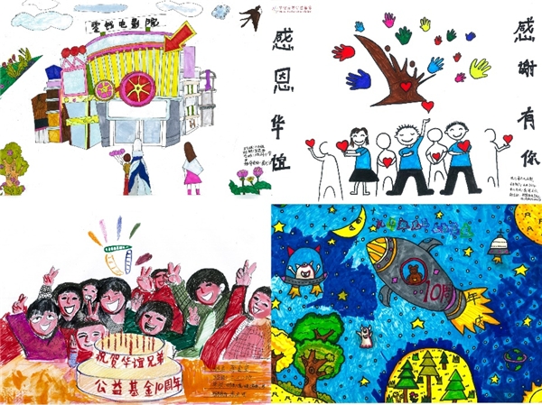 今年6月,本次十周年特展面向全國“零錢電影院”所在學(xué)校和華誼兄弟全體員工征集畫作,共計收到600余幅報名作品。經(jīng)過“零錢電影院”所在學(xué)校老師和華誼兄弟公益基金工作人員的認(rèn)真評選,最終有100幅作品脫穎而出。10月19日至11月19日,觀眾可以隨時在線欣賞小朋友們的創(chuàng)作,還可以通過收藏和分享喜愛的畫作,為孩子們加油助力。