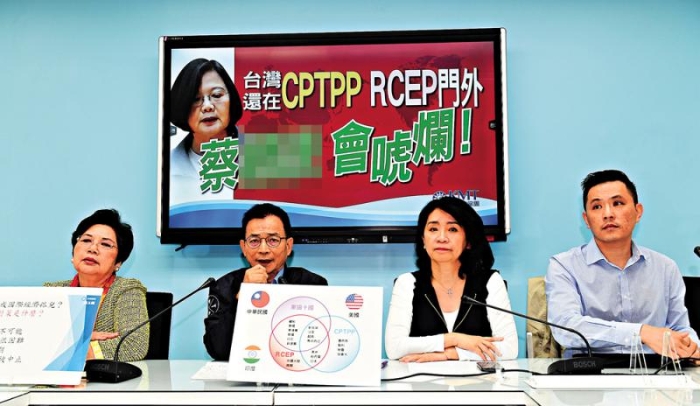 圖:國(guó)民黨召開記者會(huì)批評(píng)民進(jìn)黨當(dāng)局樂觀看待加入CPTPP事宜。\資料圖片