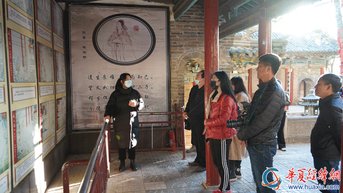 兩岸媒體記者認真傾聽講解員介紹趙氏孤兒的壁畫故事