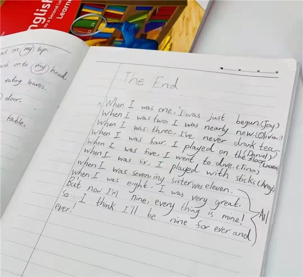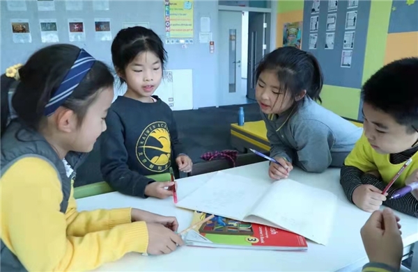 “Clair背七歲的這句臺詞,Bonnie背八歲這句臺詞”,小學(xué)部三年級的課堂上,孩子們正圍在一起,熱火朝天的討論著。