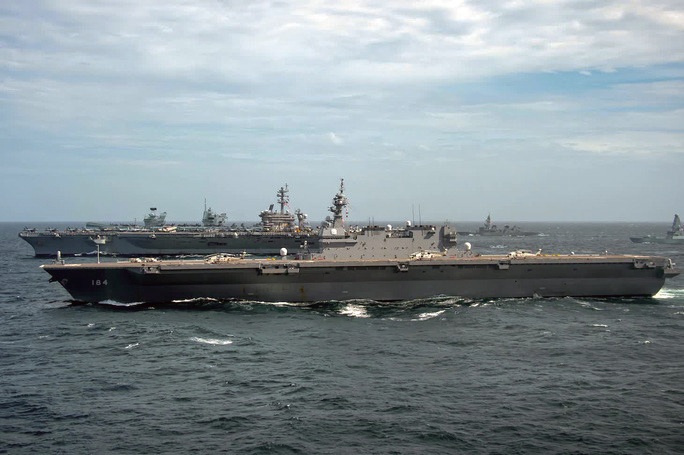 根據(jù)美國海軍發(fā)布的消息,這是“卡爾·文森”號航母打擊群今年夏季部署以來,首次與日本海上自衛(wèi)隊“出云”級直升機母艦在南海進行雙邊行動。雙方的海上安全行動包括飛行訓(xùn)練、海空部隊之間的戰(zhàn)術(shù)協(xié)調(diào)訓(xùn)練、海上加油和海上打擊演習(xí)。報道稱,聯(lián)合海上活動以及美國航母在南海的行動是美國海軍在印太“例行存在”的一部分。