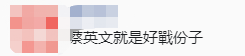 還有網(wǎng)友認(rèn)為,“蔡英文就是好戰(zhàn)分子”。