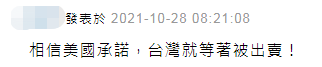 “美國(guó)的利益把臺(tái)灣推向戰(zhàn)火上!”有網(wǎng)友批評(píng),“兩岸軍事對(duì)峙讓美國(guó)軍火商口袋滿滿?!薄跋嘈琶绹?guó)承諾,臺(tái)灣就等著被出賣(mài)?!?/p>