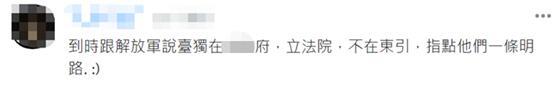 還有網(wǎng)友提議:“到時跟解放軍說‘臺獨’在‘總統(tǒng)府’‘立法院’,不在東引,指點他們一條明路?!薄?/p>