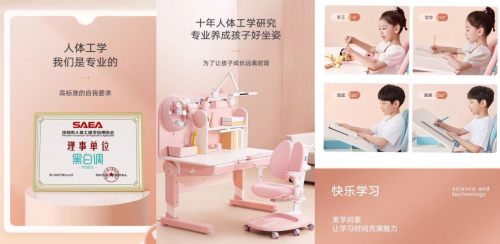 在人體工學(xué)設(shè)計方面,黑白調(diào)學(xué)習(xí)椅、兒童書桌不斷進行突破。兒童書桌可多維調(diào)節(jié),能讓孩子從3歲用到18,適合全學(xué)齡段兒童學(xué)習(xí),桌面傾斜角度為0-50°,桌面離地高度是可以隨意調(diào)節(jié)的,范圍是50-76cm。至于黑白調(diào)學(xué)習(xí)椅,則能夠全方位契合兒童的人體生物工程學(xué)原理特征,35-56cm可調(diào)節(jié)范圍、受重鎖定、馬鞍型分壓結(jié)構(gòu)、3D包裹式雙靠背、擱腳盤設(shè)計,以及0-60°可旋轉(zhuǎn)等功能與亮點,均得到了家長的點贊。